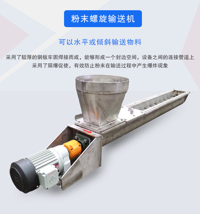 粉末螺旋輸送機(jī)是專門針對粉末物料輸送而設(shè)計的一款輸送機(jī),粉末螺旋輸送機(jī)采用全密封結(jié)構(gòu),可避免粉末在輸送過程中的粉塵污染.