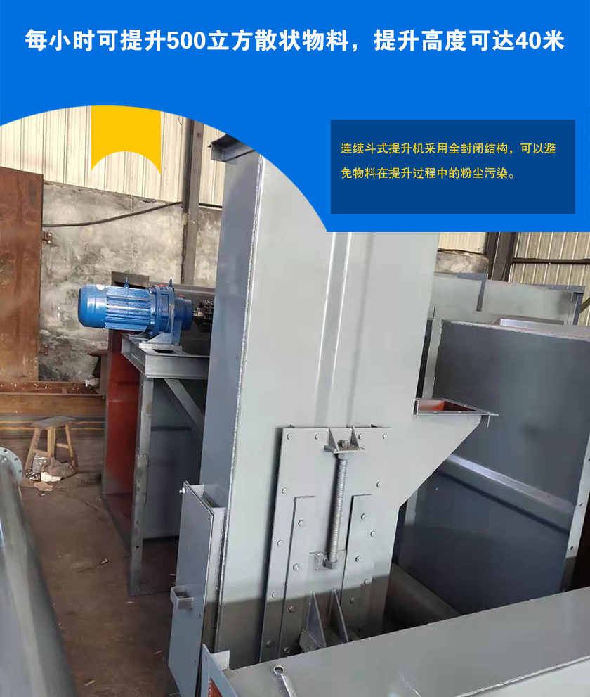 連續(xù)斗式提升機(jī)采用鏈條或皮帶進(jìn)行物料的垂直提升工作,提升高度可達(dá)40米,每小時(shí)可提升500立方的散裝物料,連續(xù)斗式提升機(jī)可按照用戶輸送要求定制設(shè)計(jì).