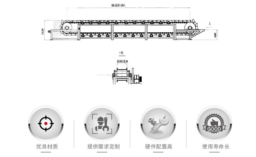 鏈板式輸送機簡稱鏈板輸送機,采用板式鏈條牽引,強度高,鏈板式輸送機輸送傾角可達30°-35°,彎曲半徑一般為3米-5米,輸送長度咔噠250米.