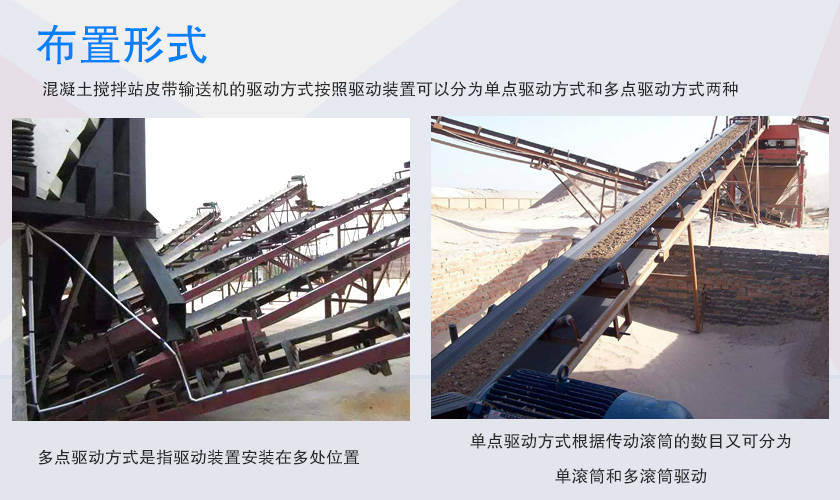 混凝土攪拌站皮帶輸送機(jī)的驅(qū)動(dòng)方式按照驅(qū)動(dòng)裝置可以分為單點(diǎn)驅(qū)動(dòng)方式和多點(diǎn)驅(qū)動(dòng)方式兩種。所謂單點(diǎn)驅(qū)動(dòng)方式是指驅(qū)動(dòng)裝置集中安裝在輸送機(jī)的某一位置,一般安裝在機(jī)頭處;多點(diǎn)驅(qū)動(dòng)方式是指驅(qū)動(dòng)裝置安裝在多處位置。通常帶式輸送機(jī)采用單點(diǎn)驅(qū)動(dòng)方式,單點(diǎn)驅(qū)動(dòng)方式根據(jù)傳動(dòng)滾筒的數(shù)目又可分為單滾筒和多滾筒驅(qū)動(dòng),而滾筒又可由單個(gè)或多個(gè)電動(dòng)機(jī)驅(qū)動(dòng)。單筒、單電機(jī)驅(qū)動(dòng)方式為常用的。