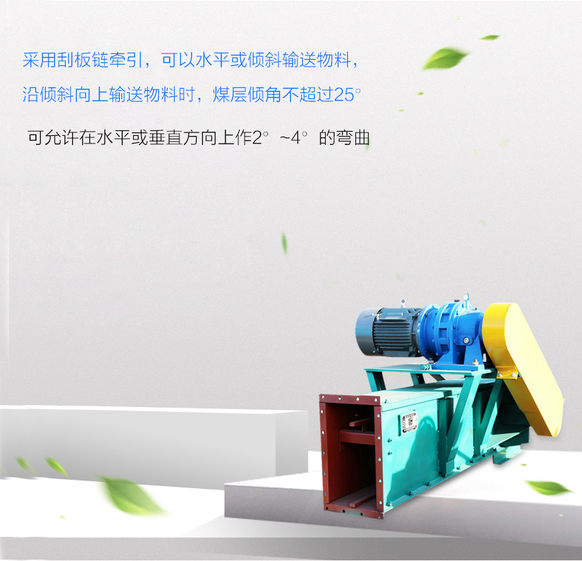 刮板鏈?zhǔn)捷斔蜋C(jī)簡稱刮板輸送機(jī),主要采用刮板鏈牽引,可以水平或傾斜輸送物料,沿傾斜向上輸送物料時,煤層傾角不超過25°,向下輸送物料時,傾角不超過20°,當(dāng)煤層傾角較大時,應(yīng)該加裝防滑裝置,刮板鏈?zhǔn)捷斔蜋C(jī)相鄰中部槽在水平、垂直面內(nèi)可有限度折曲的叫可彎曲刮板鏈?zhǔn)捷斔蜋C(jī),可允許在水平或垂直方向上作2°~4°的彎曲。