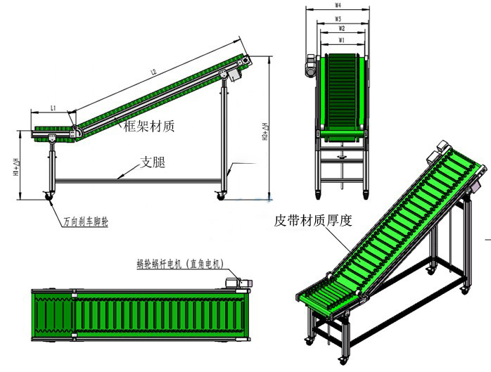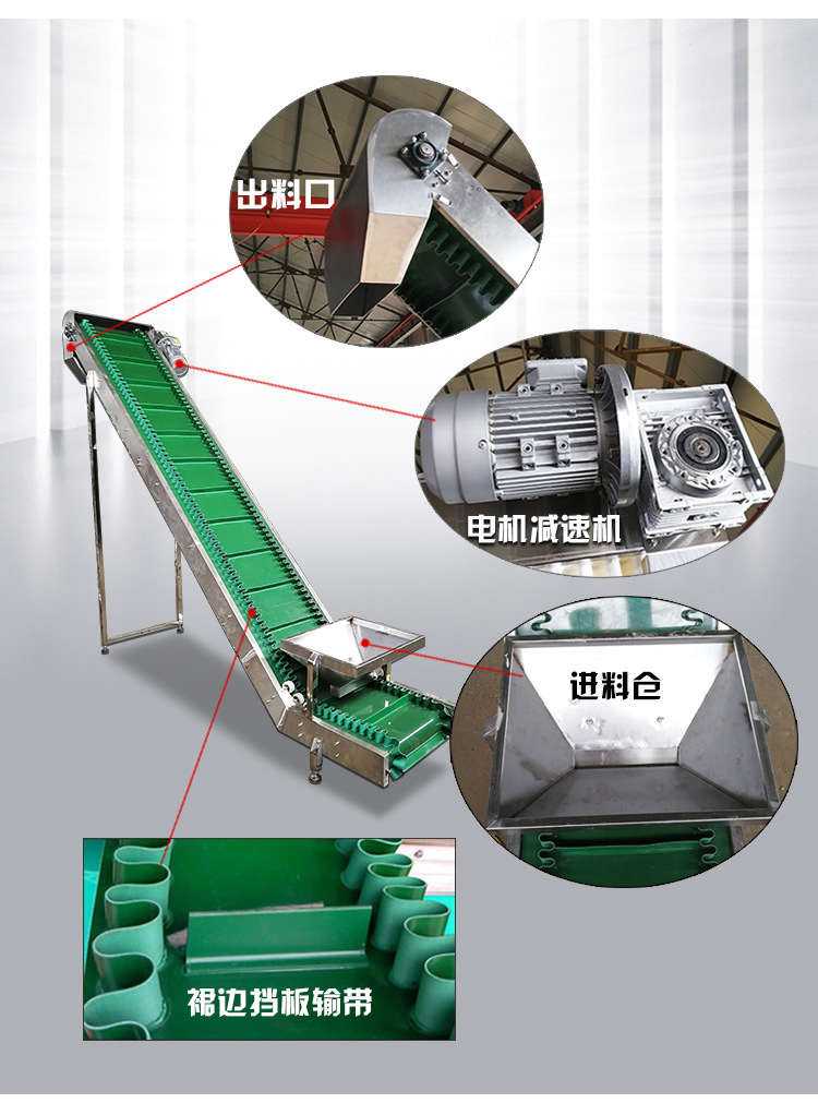 1、波狀擋邊輸送帶和橫隔板設(shè)計(jì),可以防止物料在輸送過(guò)程中散落或下滑。