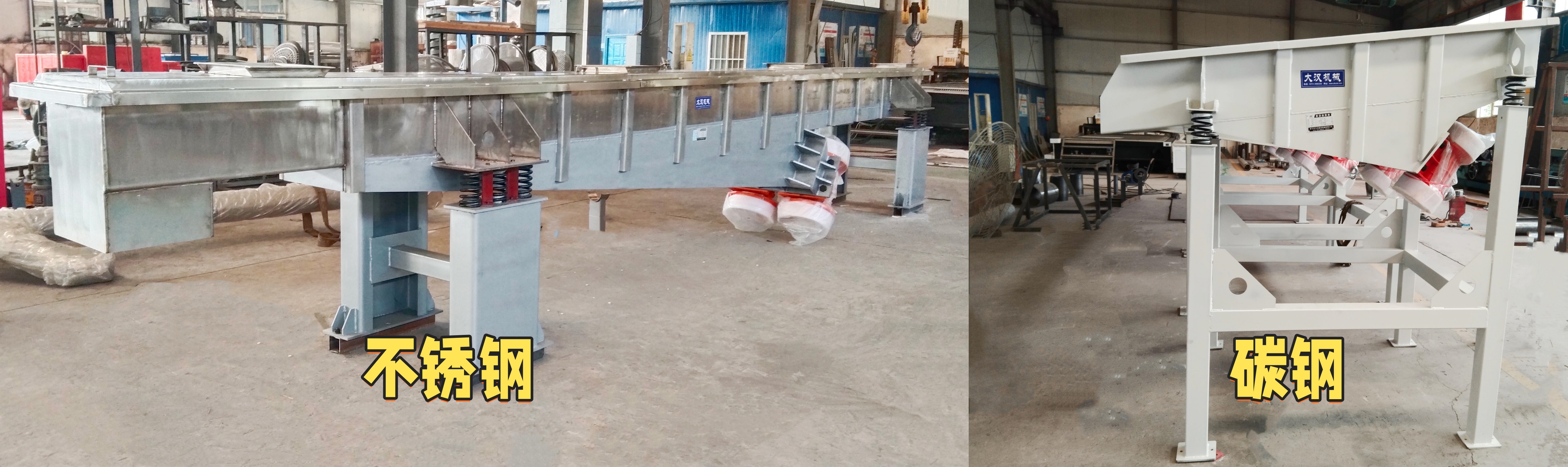 碳鋼材質(zhì):碳鋼是振動給料機最常用的主體材質(zhì),采用優(yōu)質(zhì)鋼板與型鋼焊接成型,結(jié)構(gòu)強度高、剛性好、承載能力強,耐磨耐用且成本適中。槽體可加裝耐磨襯板,適合礦山、砂石、煤炭、礦石等非腐蝕性物料。