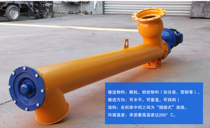 輸送物料:顆粒度較小或粉狀物料(如干粉,細沙),不易輸送粘性物料。