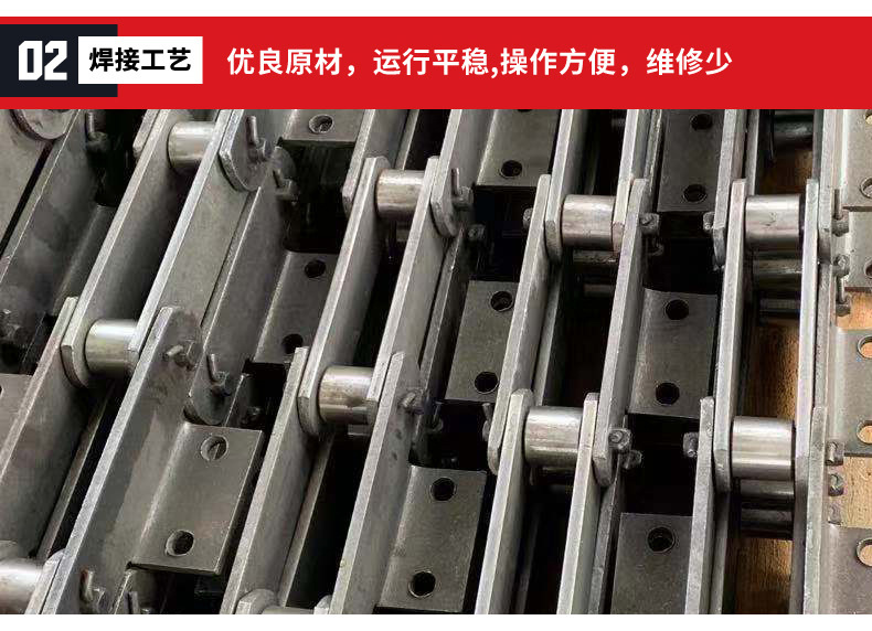 NE斗式提升機中都采用此種型號的鏈條,有NE15-NE800型號,NE15斗式提升機是單鏈,把板鏈用螺栓和料斗直接緊固在一起就行(NE板鏈上有固定的螺絲孔),NE30以上的斗式提升機都是雙鏈條的,安裝時在料斗的兩側(cè)平行擺好板鏈鏈條,在斗式提升機料斗的左右兩側(cè)分別用螺栓把鏈條和料斗逐個螺緊即可。