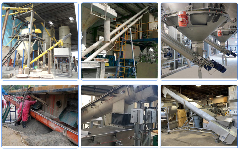 上面是不同類型的傾斜螺旋輸送機(jī)的輸送角度,下面展示不同角度的傾斜螺旋輸送機(jī)的現(xiàn)場(chǎng)圖片: