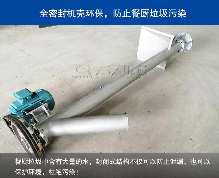 無(wú)軸螺旋輸送機(jī)采用全封閉輸送和易清洗的螺旋表面,全封閉的結(jié)構(gòu)也可以保障可保證餐廚垃圾在輸送過(guò)程中發(fā)生物料飛濺和泄漏問(wèn)題,從而保護(hù)環(huán)境衛(wèi)生和所送物料不受污染、不泄漏。