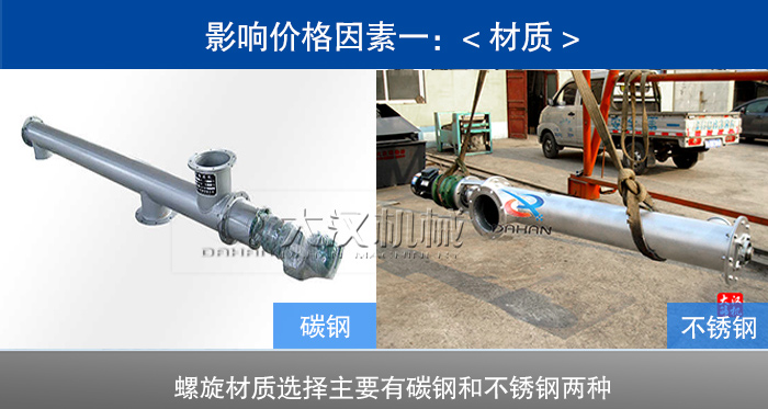 餐飲垃圾無軸螺旋輸送機(jī)的材質(zhì)有碳鋼、不銹鋼兩種材質(zhì),不銹鋼材質(zhì)的價格要貴1倍左右,不銹鋼的主要用于對輸送環(huán)境要求高的行業(yè),清潔度高,不會污染物料,使用時間長,造價也相對高。碳鋼材質(zhì)可以主要應(yīng)用在一些對物料要求不是很嚴(yán)格或?qū)Γ?b>對于餐飲垃圾的輸送您選擇碳鋼材質(zhì)即可,在價格上也能便宜不少。