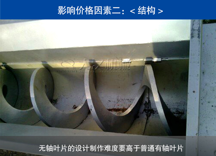 餐飲垃圾無軸螺旋輸送機(jī)在結(jié)構(gòu)特點(diǎn)上其是有所差距的。其中明顯的就是中心軸分為有軸和無軸,雖然他們就只有一根螺旋軸的差距,但是價格還是有幾百甚至上千元的差異,具體差異要以型號差異為主。無軸葉片的設(shè)計制作難度要高于普通有軸葉片,所以在價格餐無軸螺旋輸送機(jī)要出不少。