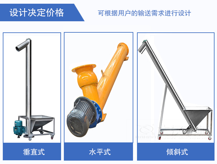螺旋輸送機(jī)根據(jù)用戶的要求可以設(shè)計(jì)成垂直式的、水平式、傾斜式的,可根據(jù)用戶的輸送需求進(jìn)行設(shè)計(jì),由于設(shè)計(jì)與產(chǎn)品的制造工藝有關(guān),每個(gè)廠家對(duì)于螺旋輸送機(jī)的工藝不同,這就決定了螺旋輸送機(jī)價(jià)格的高低。