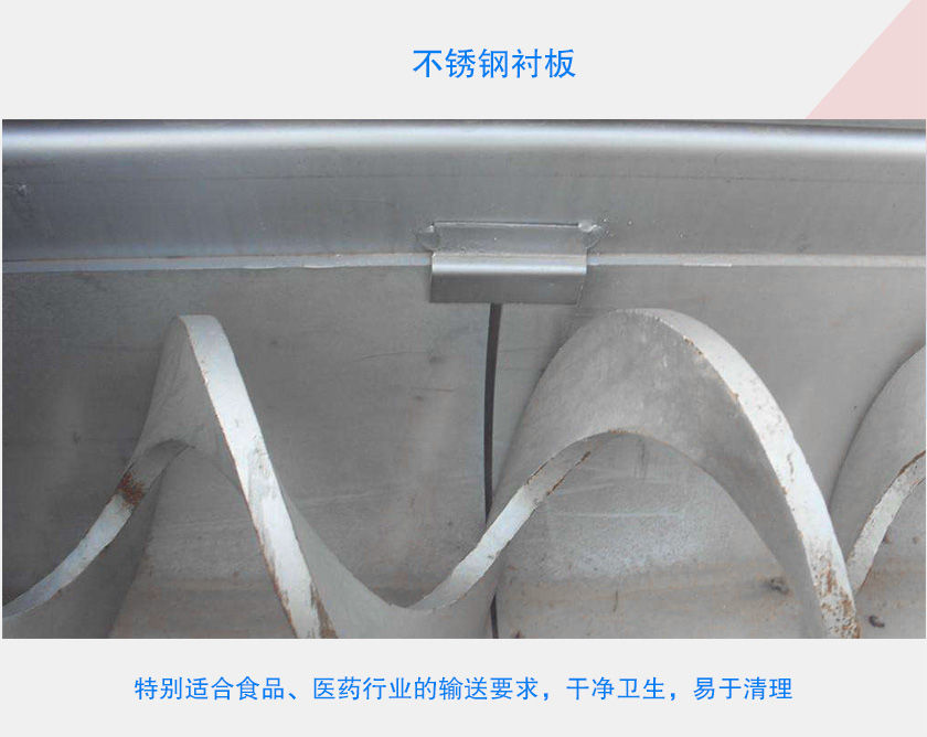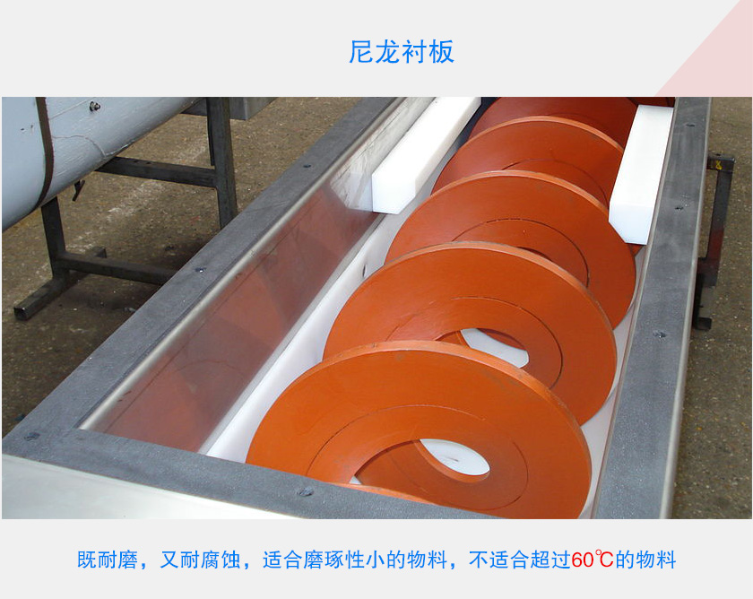 以上是對(duì)無(wú)軸螺旋輸送機(jī)襯板的介紹,在客戶使用當(dāng)中,可以根據(jù)情況可自行更換襯板,螺旋輸送機(jī)襯板材質(zhì)可依據(jù)用戶需要及輸送物料來(lái)選擇。