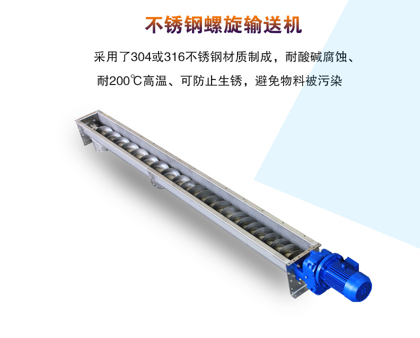 不銹鋼螺旋輸送機采用了304或316不銹鋼材質(zhì)制成,耐酸堿腐蝕、耐200℃高溫、可防止生銹,避免物料被污染,是食品、醫(yī)藥行業(yè)專用的一種輸送機設(shè)備,那么不銹鋼螺旋輸送機多少錢一臺呢?接下來就來為您介紹一下: